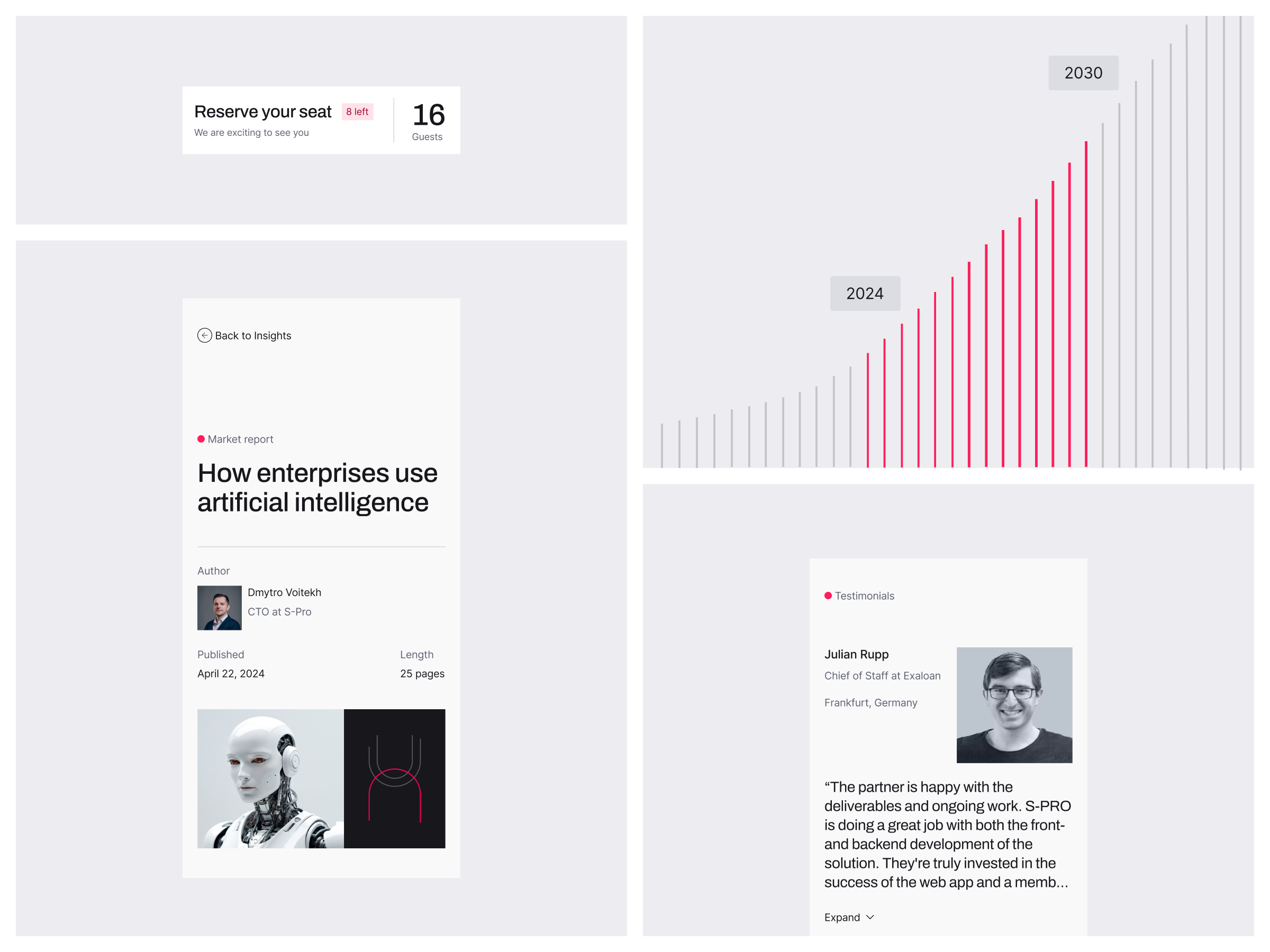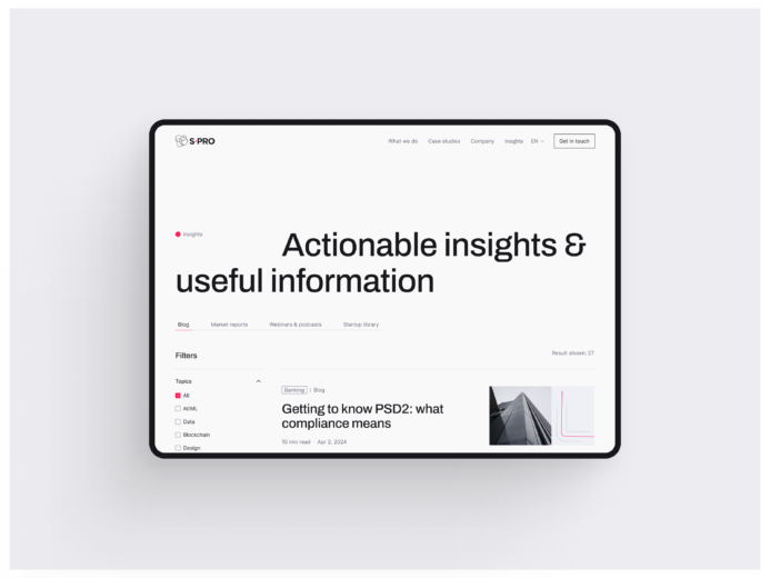 S-PRO is a Swiss fintech software development company with 10+ years of proven expertise in the field. The company achieved 78% annual growth, which marked the shift from startups focus to enterprise partnerships. To reflect this evolution, S-PRO underwent rebranding, followed by a complete website redesign by our team.