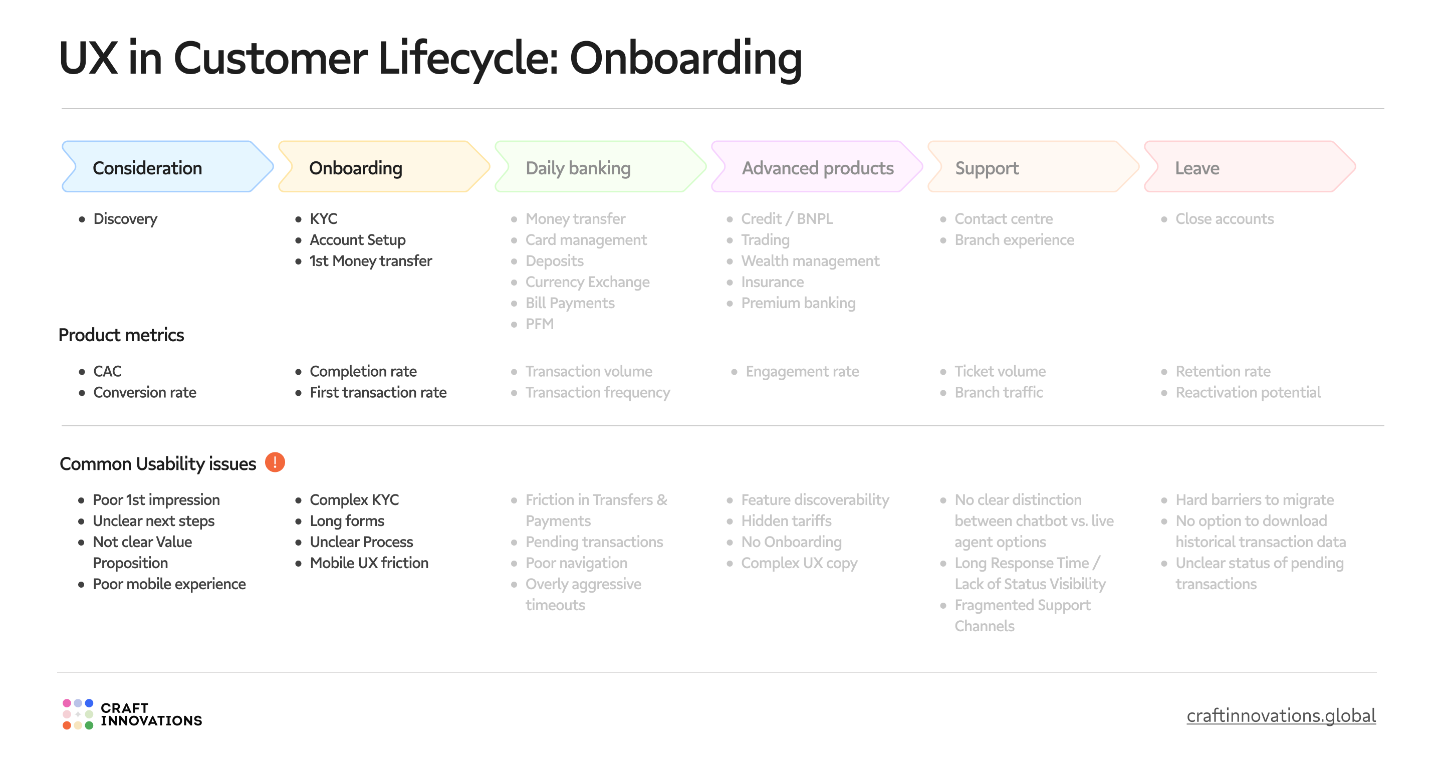This article focuses on usability in fintech – specifically how UX impacts key product metrics across the entire customer lifecycle. You’ll learn what stages fintech users go through, which metrics matter at each step, and how usability testing builds UX-driven growth.